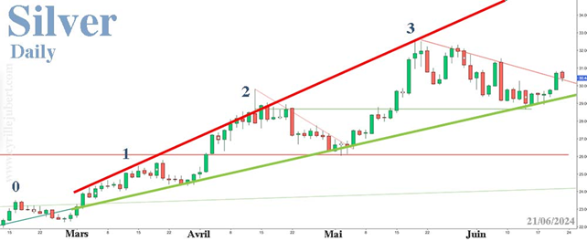Having examined all the mining companies' balance sheets, project by project, it's obvious that the planned production will not be achieved this year. Silver mining production continues to decline and, in the best case scenario, it will remain at the current level from 2024 to 2030. Note that Mexico, the world's leading producer of silver, will have exhausted its underground reserves in two years, and China in 10 years.
