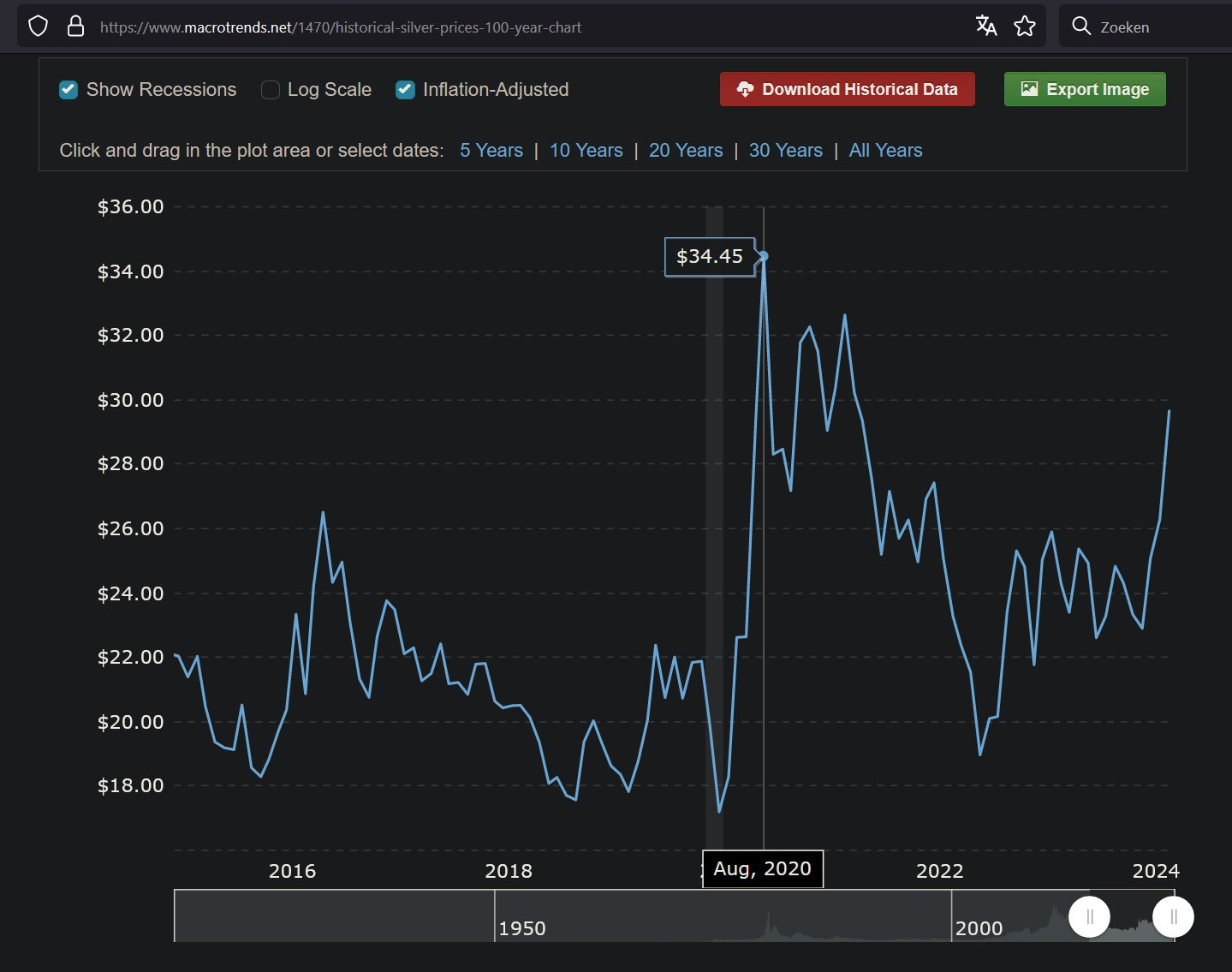 In nominal terms, the price of silver has returned to levels seen eleven years ago, but in real terms, it is still a long way from the peak reached in 2020, equivalent to $34.45 today.