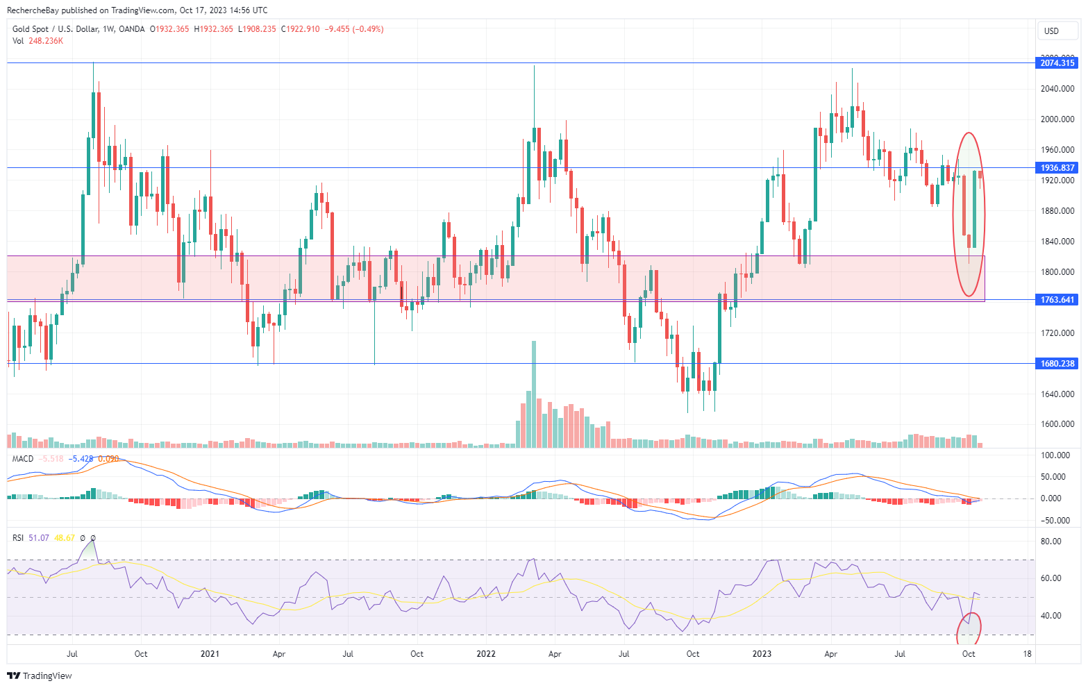 The price of gold should correct in this context of rising rates, but the tense geopolitical situation and the avalanche of upcoming Treasury auctions are keeping the yellow metal above $1,900: