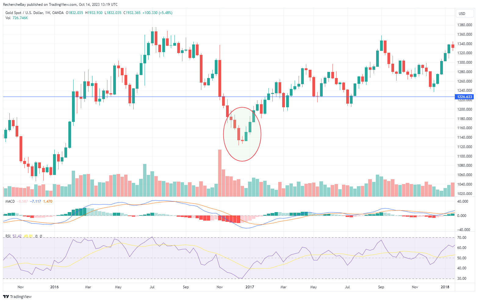 It's been six years since we've seen such a reversal pattern in gold. The last "morning star" was in December 2017, at the $1,125 support level, a level that was never tested again thereafter.