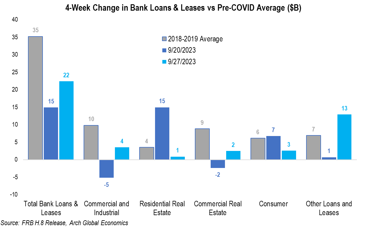 The question is whether this fragility in the banking and insurance sector is likely to cause a contraction in credit: Are banks facing significant losses on bond securities being encouraged to reduce lending? Does the new interest-rate environment affect banks' ability to grant new loans? Is the flight of depositors changing lending conditions?