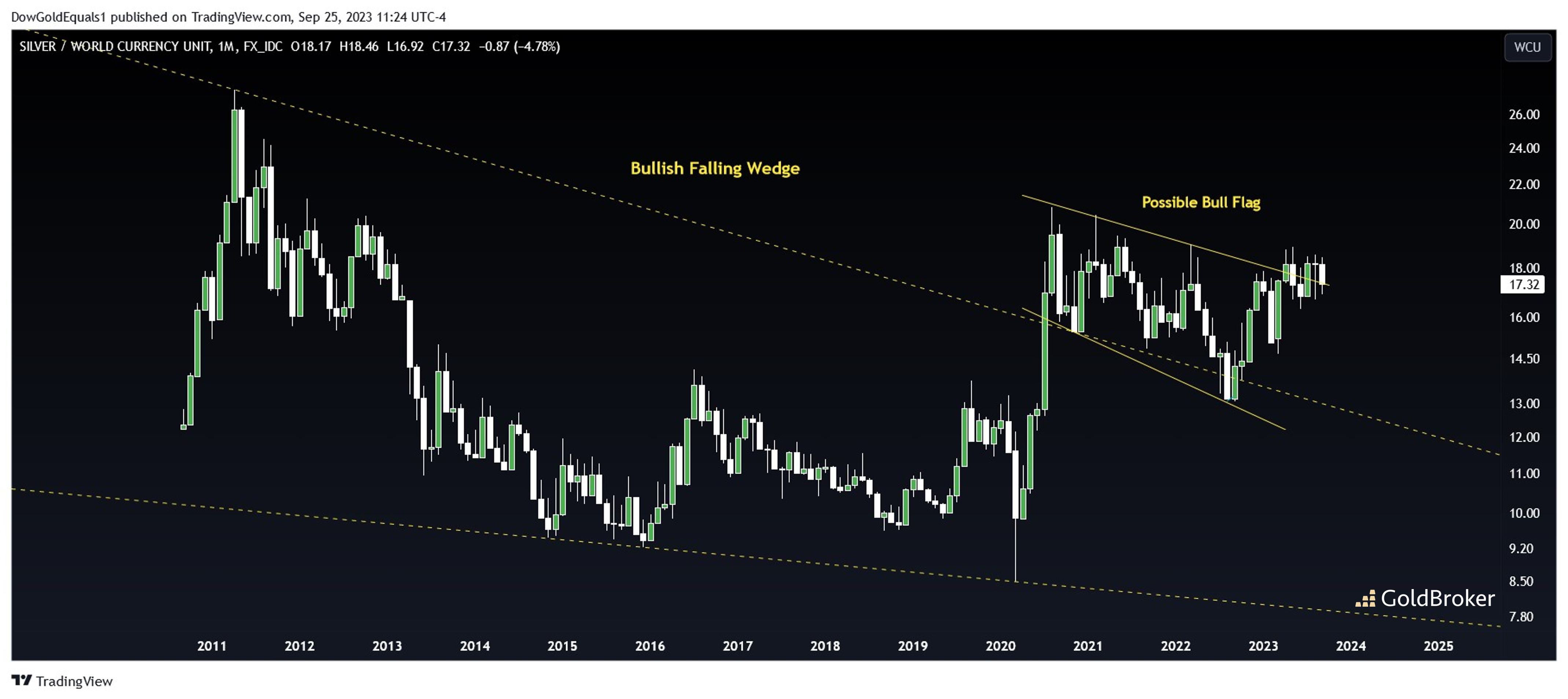 Silver/WCU looks particularly exciting, as price has now broken out of the bull flag we identified six months ago. More significantly, this bull flag breakout also represents a successful backtest of a huge bullish falling wedge. With this important breakout, we can reasonably expect an impulsive move higher over the next 12-24 months that would take price back toward its all time high set in 2011.