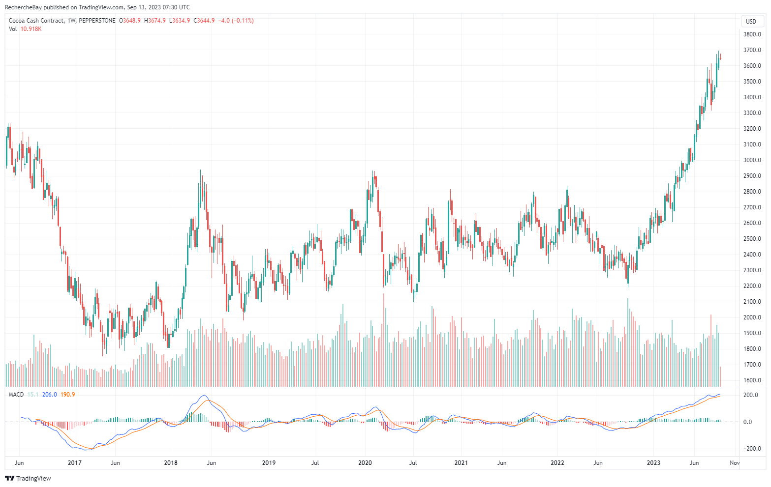 The surge in cocoa prices is even more spectacular this year:
