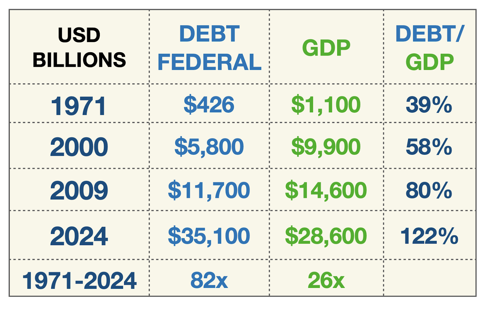 With debt up 82x since Nixon closed the gold window in 1971 and GDP only up 26x, it is not difficult to see that the US engine is running on empty.