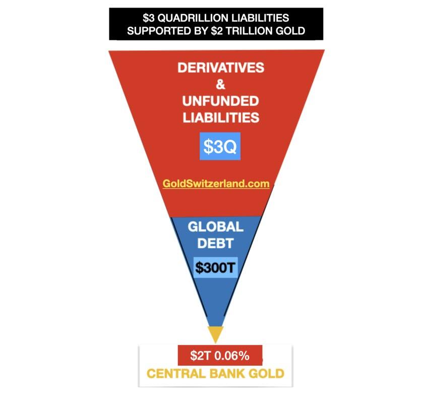 The latest BIS quarterly review refers to the opaque off balance sheet derivatives market. I am still of the opinion that total derivatives including the shadow market could easily be $2-3 quadrillion. $2 quadrillon debt precariously resting on $2 trillion gold.