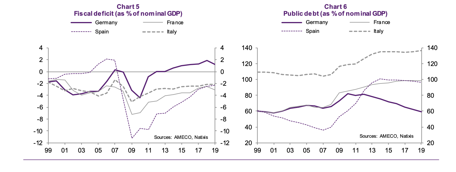 In the end, you will not be surprised to read that "the fiscal deficit (Chart 5) [would probably be at] an unsustainable level given the public debt ratio (Chart 6) in France, Spain and Italy".